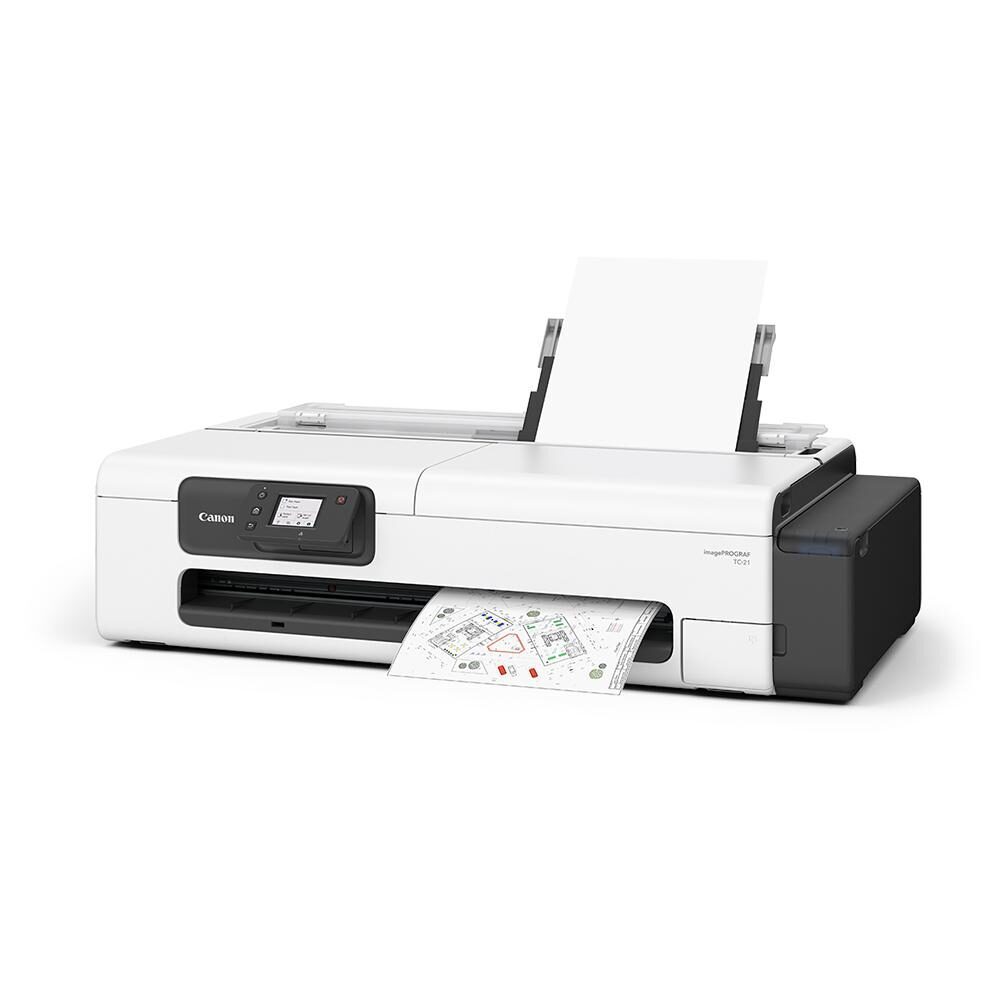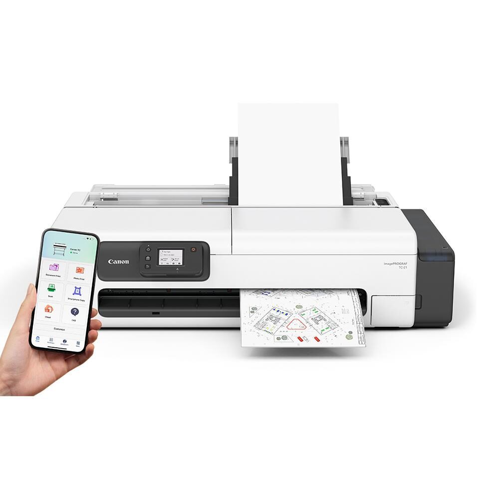 L’imprimante imagePROGRAF TC-21 de Canon est conçue pour offrir la polyvalence dont les utilisateurs ont besoin pour créer des affiches, des bannières, des dessins de CAO, des étiquettes de haute qualité et plus encore. Idéale pour l’enseignement, les bureaux à domicile, les épiceries, le domaine des soins de santé, l’architecture, le domaine de la construction et bien plus encore, cette imprimante grand format polyvalente convient aux supports en rouleau compatibles d’au plus 24 po de largeur ou aux étiquettes et aux papiers de formats lettre à A1 à partir de l’alimentateur automatique. Elle permet également de réaliser rapidement des impressions à partir d’une clé USB au moyen du port de clé USB. Grâce à l’inclusion de 280 ml d’encre (70 ml par bouteille) l’imprimante TC-21 se distingue par la plus grande capacité d’encre de sa catégorie, ce qui permet aux utilisateurs d’imprimer davantage en éliminant les remplissages fréquents.